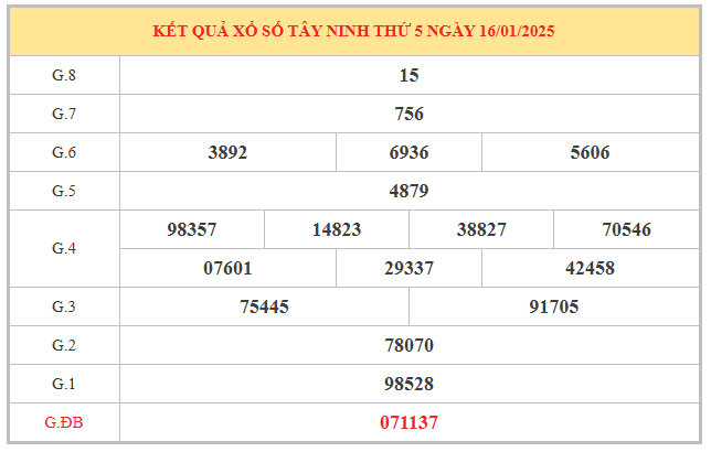 Giải đặc biệt tỉnh Tây Ninh : 071137